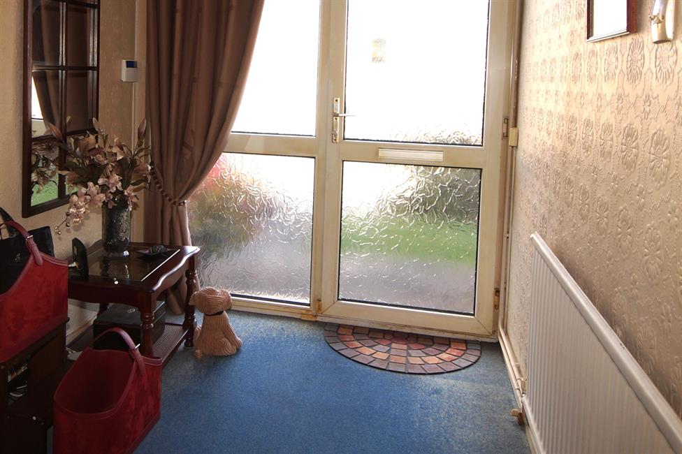 REAR UTILITY ROOM: (7’3 x 9’9) Spaces for washing machine and tumble drier, additional fridge/freezer, cupboard space. Double glazed uPVC door to exterior, fully tiled, inset ceiling lighting, coving, timber panelled door with etched glass to kitchen.