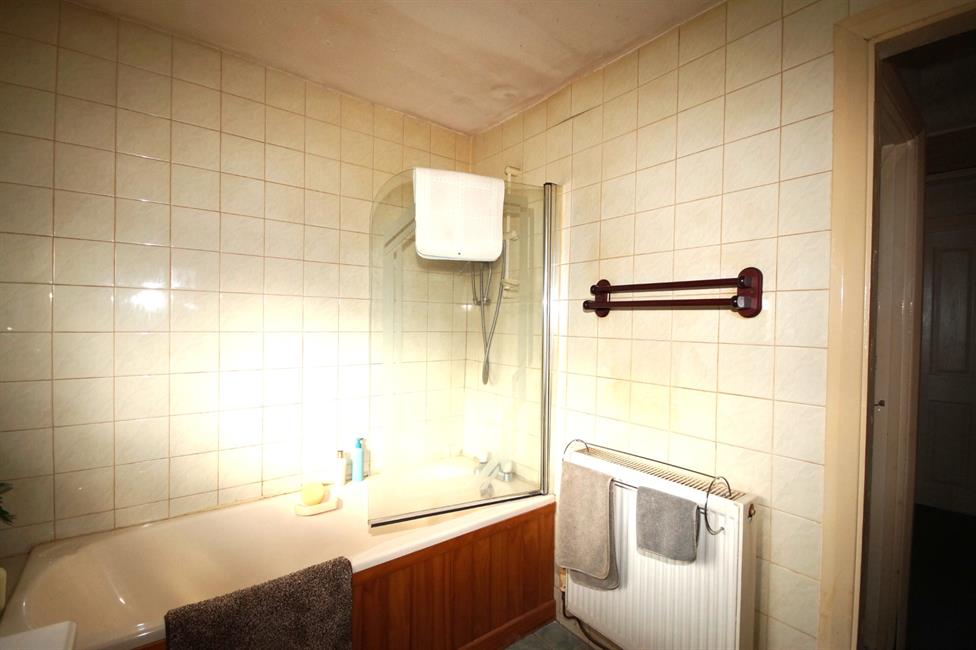 REAR BEDROOM TWO: (12’9 x 11’10) Double glazed uPVC window overlooking rear garden, one radiator. Large wardrobe with slide-back doors with hanging rail, shelving and drawers, coving and pendant light.FRONT BEDROOM THREE: (8’8 x 7’11) Double glazed uPVC doors to front balcony, curtain track above, one radiator, picture rail and pendant light. REAR BEDROOM FOUR: (9’10 x 9’2) Double glazed uPVC window overlooking rear garden, drop down blind, radiator under, picture rail and pendant light.FAMILY BATHROOM: (8’9 x 5’10) Two double glazed uPVC frosted windows to side, suite in white comprising a large free standing roll top bath with a Mains shower over, overhead drencher and handheld spray, low flush close coupled w.c. pedestal wash hand basin with mixer taps, radiator with towel drier, half tiled walls, coving, six inset ceiling lights and black and white diamond shaped floor.