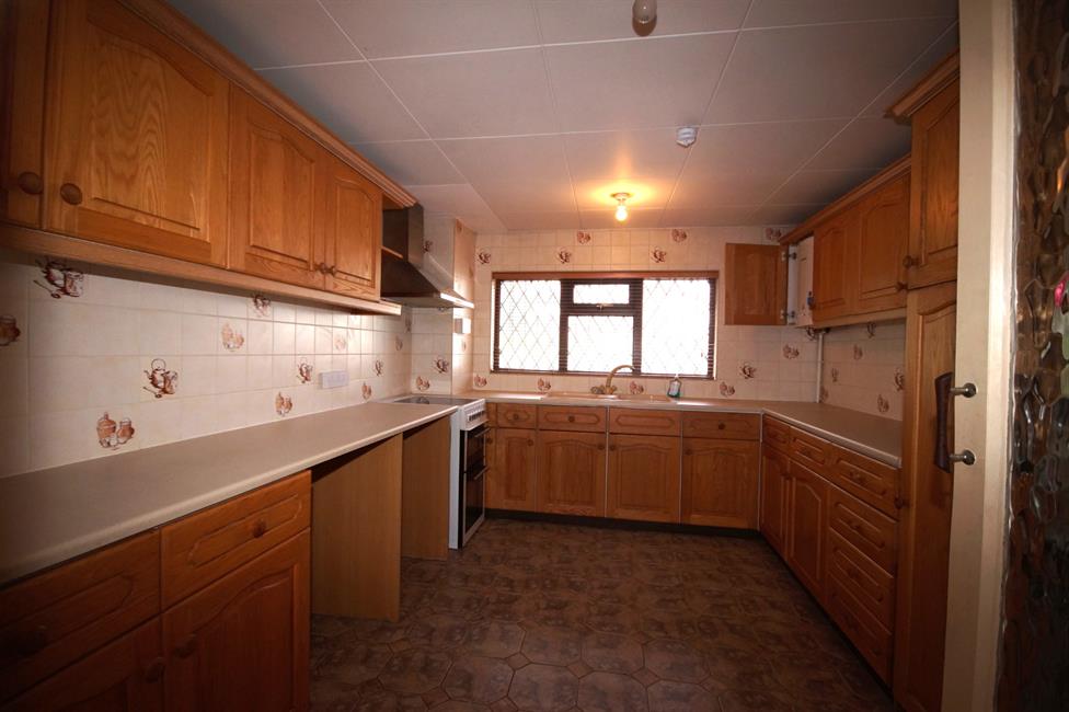 MAIN LOUNGE: (15’4 x 23’7) Two Windows to rear, each with double radiator under, reconstituted stone fireplace with raised hearth, Cotswold stone surround, alcoves either side, laminated floor and six fitted wall lights. Door and side screen off to -KITCHEN: (11’10 x 10’) Double glazed uPVC window to front, fitted venetian blind and a view of the church. Range of fitted units comprising, cupboards, drawers and roll top work surfaces, built-in one and half bowl sink unit with mixer tap, room for slot-in cooker with overhead extractor, space for washing machine and large space for large fridge/freezer, end cabinet with gas fired Worcester boiler to serve heating and the hot water tank, fully tiled walls, ceramic tiled floor and two ceiling lights.