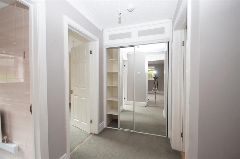 FRONT BEDROOM ONE: (15’6 to inc fitted wardrobe space x 10’4) Double glazed window to front, fitted venetian blind, radiator under, built-in wardrobes with hanging rail and shelving and sliding mirrored doors. Coving and pendant light. REAR BEDROOM TWO: (8’5 x 6’4 and 13’8 to inc fitted wardrobe space) Double glazed uPVC window to rear, one radiator under, coving and pendant light. Built-in wardrobes with sliding mirror doors, shelf and hanging rail. BATHROOM: (8’4 x 6’11) Double glazed frosted window to rear, venetian blind, suite in grey comprising panelled bath with shower attachment, wash hand basin, low flush close coupled w.c. in pale grey. Separate shower cabinet with wall mounted electric shower, fully tiled walls, radiator, ceramic tiled floor, coving and ceiling light.