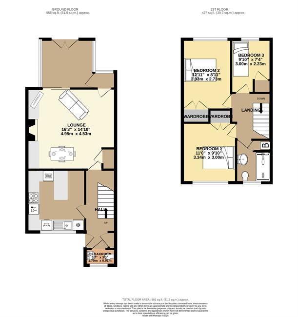 FIRST FLOORLANDING: (8’ x 5’10) Built-in airing cupboard. FRONT BEDROOM ONE: (11’ x 9’10) Double glazed uPVC window to front with curtain track above, radiator under. Large built-in wardrobe. Coving and ceiling light. REAR BEDROOM TWO: (12’11 x 8’11) Double glazed uPVC window to rear. Built-in cupboard with hanging rail & shelf, built-in over bed cupboards, radiator, coving and ceiling light.REAR BEDROOM THREE: (9’11 x 7’7) Double glazed uPVC window to rear with fitted vertical blinds, one radiator, built-in cupboard. BATHROOM: (8’ x 6’6) Double glazed uPVC frosted window to rear. Suite in white comprising: Retired type walk-in shower, low flush close coupled w.c. wash hand basin, radiator, fully tiled walls, built-in airing cupboard with wall mounted Worcester combination boiler to serve heating and hot water. Coving and ceiling light.