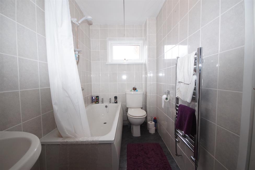 BEDROOM ONE: (14’0 x 9’) Double glazed uPVC window to front with fitted vertical blinds and curtain pole over, one radiator, built-in wardrobe with hanging rail and shelf (3’ recess for door) and ceiling light fitting.BEDROOM TWO: (9’10 x 12’7) Double glazed uPVC window to the front with fitted vertical blinds and curtain pole above, over stairs built-in cupboard and ceiling light fitting.BATHROOM: (9’9 x 4’9 ) Double glazed uPVC frosted window to rear. Suite in white comprising: Panelled bath with electric shower over, wash hand basin, low flush close coupled w.c. towel rack style radiator, fully tiled walls, ceiling light and built-in bathroom cupboard.