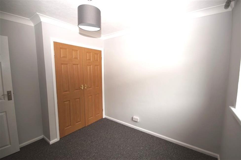 REAR BEDROOM ONE: (12’4 x 11’4) Double glazed Upvc window to rear with curtain pole above and view towards reservoir, built-in cupboard with hanging rail and shelving, fuse board and meter, pendant light.