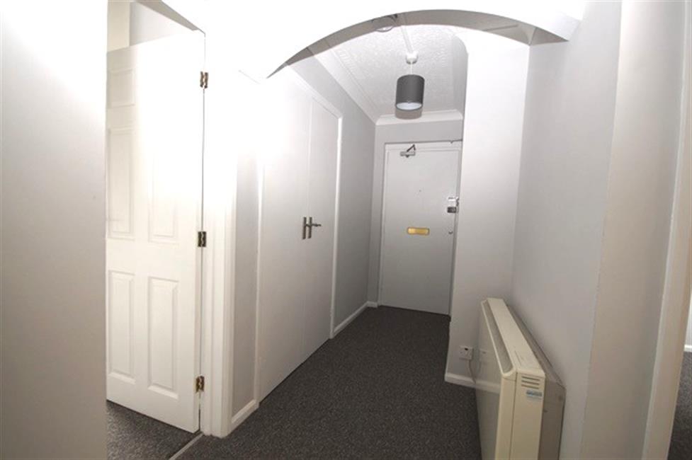 HALL: Solid front door, Large built-in cupboard with shelf and hanging rail. Airing cupboard with hot water tank and slatted shelving, Electric storage heater, coving and two fitted lights.