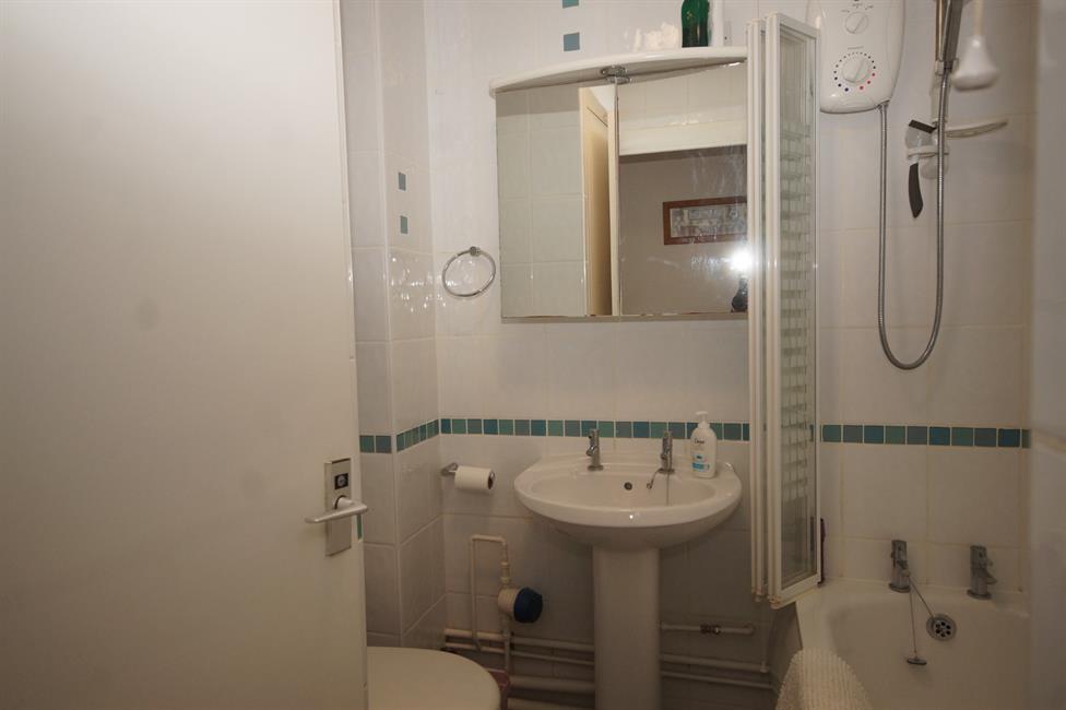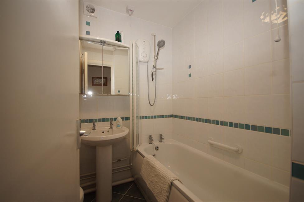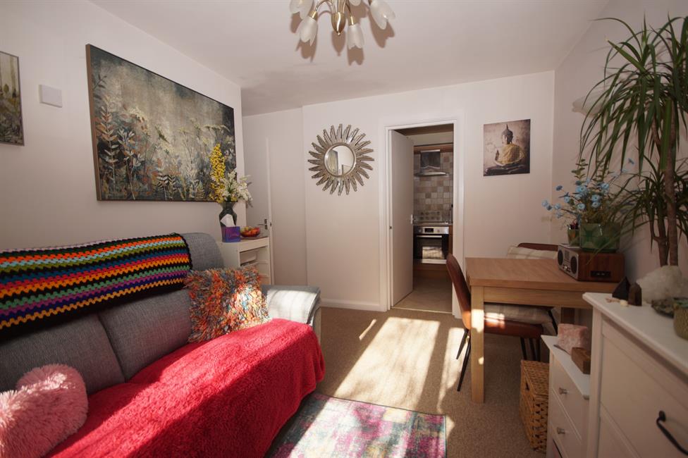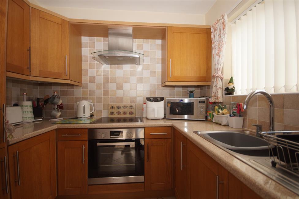 MAIN LOUNGE: (12’9” x 9’4”) Double glazed uPVC Window to front with fitted vertical blind and curtain pole above, recent Creda electric heater, ceiling light fitting, two fitted wall lights and door off to –KITCHEN: (6’10” x 7’10”) Double glazed uPVC window to side with fitted vertical blind and curtain track above. Range of fitted units comprising, cupboards, drawers and roll top work surfaces with built-in sink unit with mixer tap, built-in four ring electric hob with extractor over and oven under, fitted built-in large fridge and freezer, additional storage cupboard adjacent suitable for ironing board etc. Part wall tiling, wall mounted electric heater, ceiling mounted fluorescent light and ceramic tiled floor. Built-in washer/drier with complimentary door. BEDROOM ONE: (9’10” x 8’1”) Double glazed uPVC window to front with fitted vertical blind, curtain rail above, recent Creda electric heater and three spot ceiling light fitting.BATHROOM: (6’7” x 6’0”) Panelled bath with electric shower over and fold back shower screen, pedestal wash hand basin, low flush close coupled w.c. fully tiled with large wall mounted bathroom cabinet, extractor fan, wall mounted electric heater and LED dome ceiling light, ceramic tiled floor. Built-in airing cupboard with slatted shelving and hot water tank and adjacent controls.
