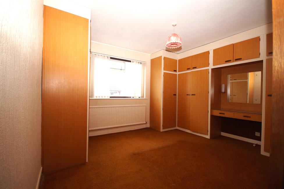 BEDROOM ONE: (8’7 x 9’6) Double glazed uPVC window to side driveway, radiator under. Built-in wardrobe, coving and ceiling light.BEDROOM TWO: (10’10 x 12’10) Double glazed window to rear with timber surrounds, fitted vertical blinds, one radiator under, Two ranges of built-in wardrobes, with hanging rails and shelving and pendant light.