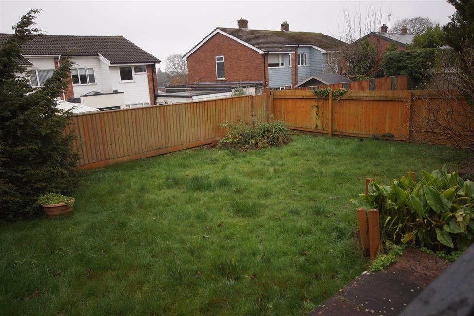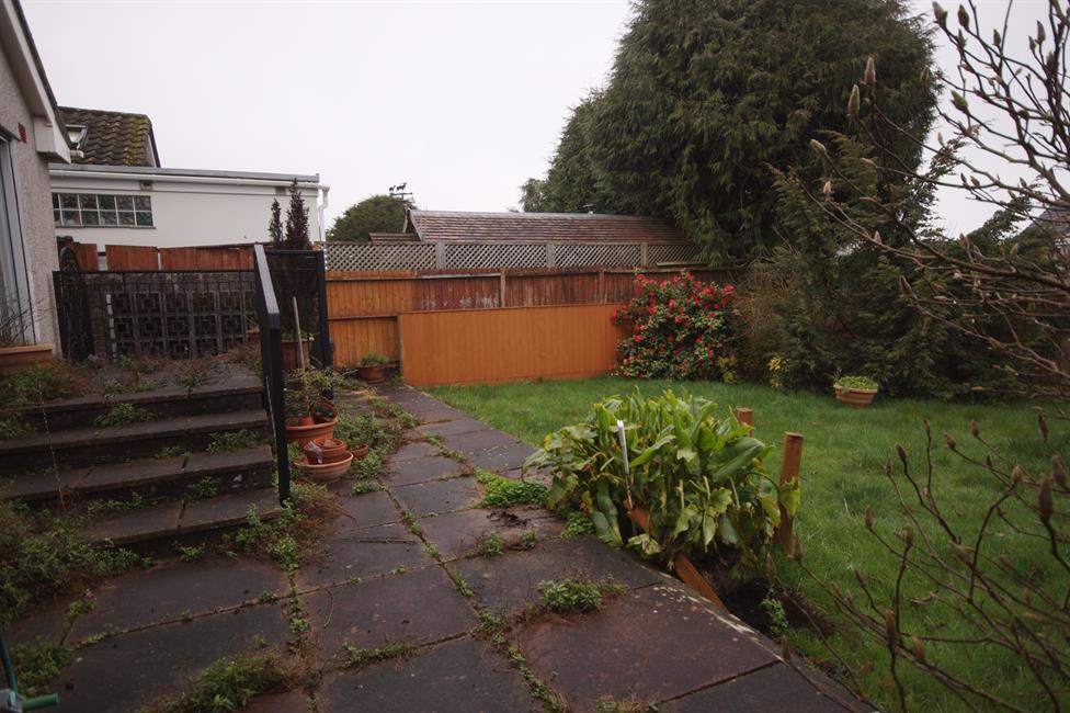 fence to surround. Block paving extends to side.